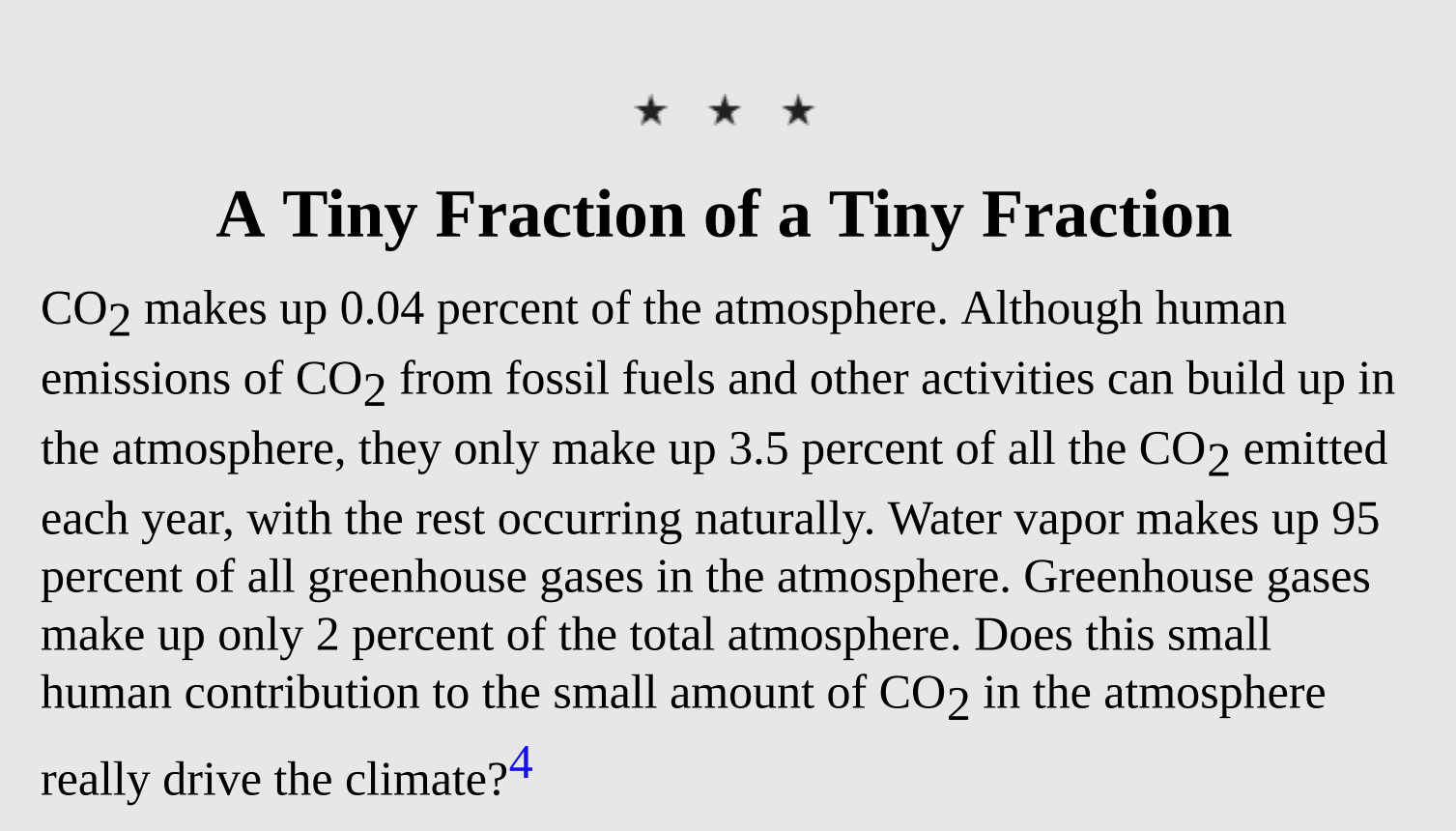 Reader: Fine, so we only slightly add to the carbon dioxide in the atmosphere, but we still add something. Should we not be worried about the part we do add?